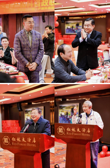 “大家还记得我们咨政联盟的宗旨吗?宗旨就是我们的灵魂,宗旨就是我们行动的指南,宗旨就是聚力的方向。大家跟我一起来背一背我们联盟的宗旨——紧跟党走,铸造智库,助力政企,服务人民。”咨政联盟顾问、著名学者、广西优秀专家、自治区党校二级教授、国务院特殊津贴专家陈学璞用咨政联盟宗旨来作致辞的开头。“我非常激动能够参加今年的团拜会年回。我想用‘越来越……’的语式来祝福大家,与大家共勉——我们咨政联盟队伍越来越大,我们咨政质量越来越高,我们的身体越来越棒,我们帅哥越来越帅,我们的美女越来越美,马年的钱财越来越多,祝福大家!”陈教授发言引得满场喝彩。